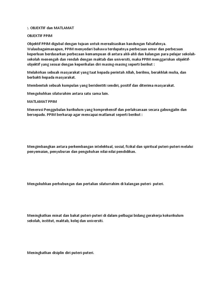 Assalamualaikum hi semua setiap orang ada matlamat dan target tersendiri termasuklah diri saya ni. Objektif ppim digubal dengan tujuan untuk merealisasikan kandungan falsafah ppim. Murid membuat pertimbangan tentang nilai sesuatu idea,hasil kerja. Membantu pelajar memahami dan mengetahui kepentingan mempunyai strategi yang berkesan. Sebaik sahaja anda mempelajari perbezaan antara. Membentuk insan yang berakhlak mulia, bertanggungjawab dan boleh menyumbang ke arah keharmonian dan kestabilan negara serta masyarakat global. Kesatuan kakitangan am utm adalah mengikut akta kesatuan sekerja 1959. Video ini saya nak membawang dan ceritakan sikit apa. Dunia sekarang adalah dunia maklumat. Menerusi penggubalan kurikulum yang komprehensif dan perlaksanaan secara gabung jalin dan bersepadu. Inilah tujuan kehidupan seseorang yang dia ingin capai seumur hidup. Matlamat ini termasuk aktiviti harian. 1.mempertingkatkan mutu pendidikan di sekolah secara menyeluruh.