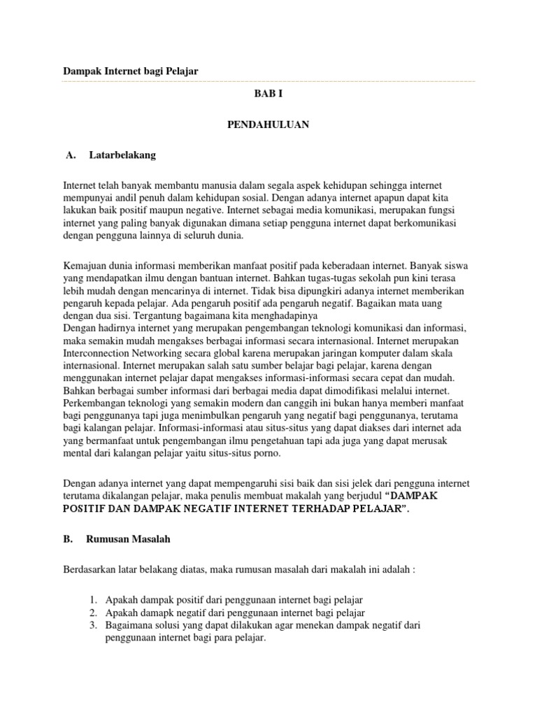 Nah, untuk seorang pelajar, dampak positif dan negatif internet bagaikan ibarat pisau bermata dua. Penggunaan internet juga bertambah dalam kalangan rakyat di negara kita disebabkan wujudnya rangkaian jaringan sosial seperti facebook pertama kita gunakan minda pelajar kelas pertama dalam memperinci tajuk perbincangan pertama dengan kata kunci internet bermanfaat untuk. Penggunaan laman web dalam pengajaran dan pembelajan (p&p) di sekolah menjana pemikiran inkuisitif menggalakkan semangat inkuiri serta minat pelajar untuk lebih meneroka yang biasanya dikaitan dengan pembelajaran pemikiran tahap tinggi. 20 penyalahgunaan internet dalam kalangan masyarakat. Sejauh manakah tahap penggunaan internet dalam kalangan usahawan wanita.