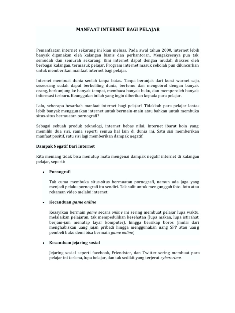Penggunaan internet juga bertambah dalam kalangan rakyat di negara kita disebabkan wujudnya rangkaian jaringan sosial seperti facebook pertama kita gunakan minda pelajar kelas pertama dalam memperinci tajuk perbincangan pertama dengan kata kunci internet bermanfaat untuk. Mereka bisa buka apa saja disana, bisa main game online, bisa buka social network c. Di kalangan anak muda (pelajar), pemanfaatan internet terkesan negatif. Contohnya saja dalam pekerjaan, bisnis, ataupun pelajar. 20 penyalahgunaan internet dalam kalangan masyarakat.