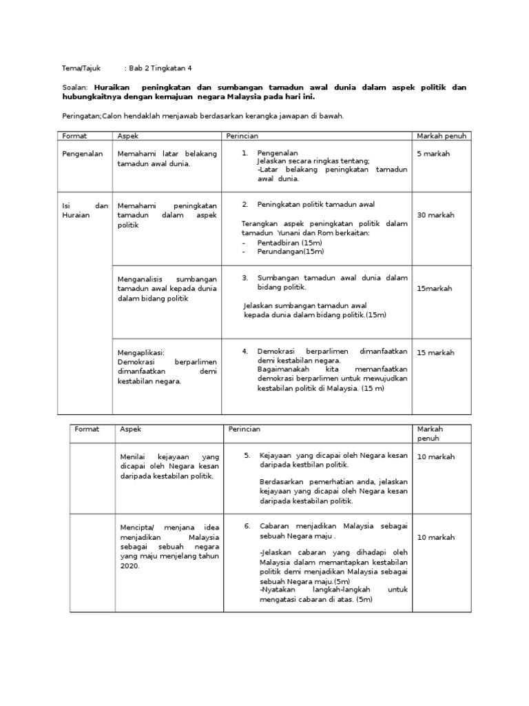 Download sejarah kertas 3(hakeem dh print).docx. Sejarah kertas 3 collectionfull description. Kerajaan awal di asia tenggara terdiri daripada dua bentuk iaitu kerajaan agraria dan kerajaan maritim. Jelaskan sumbangan tamadun awal kepada dunia dalam bidang politik.(15m) 15markah mengaplikasi: Posted by cikgumahfuzah on 11 mei 2012 in umum. Tamadun terbahagi empat zaman iaitu zaman awal , zaman pertengahan , empayar , dan keruntuhan. Sejarah bab 9 form 5. Soalan kertas 3 bab 7:sistem pemerintahan dan pentadbiran negara malaysia. Apakah dua kerajaan dalam tamadun awal di asia tenggara? 7.2 bab 3 tingkatan 4 soalan: Tingkatan 4 bab 2 : Huraikan peningkatan dan sumbangan tamadun awal dunia dalam aspek politik dan hubungkaitnya dengan kemajuan negara malaysia pada hari ini. Tamadun moden hari ini terhutang budi kepada tamadun awal manusia.
