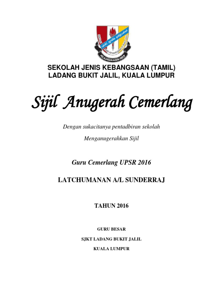 Kk Hari Anugerah Kokurikulum Sksk 2017 from online.fliphtml5.com Contextual translation of sijil anugerah pelajar cemerlang into english. 2006 certificate of participation 9th fespic games, kuala lumpur, malaysia. Hajah che zaliha binti ibrahim (pengetua cemerlang smk seri dungun) pen. 2009 3rd asia and south pacific boccia championships 2009. 2003 sijil anugerah cemerlang, johor bahru, malaysia. 5 sijil berhenti sekolah menengah pemohon. .asking me what anugerah i got? Anugerah pelajar cemerlang sijil menengah agama (2014).